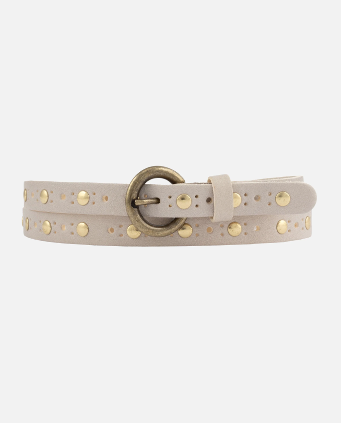 Elevate your style effortlessly with our skinny leather belt Chloe. Adorned with vintage bohemian studs and an antique gold round buckle, it pairs seamlessly with dresses or jeans, adding a captivating touch of sparkle and a distinctive bohemian edge to your outfit.