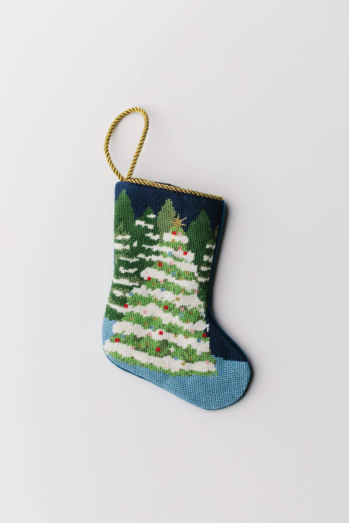 Each needlepoint Bauble Stocking is hand-stitched in Haiti for fair trade by a certified BCorp.