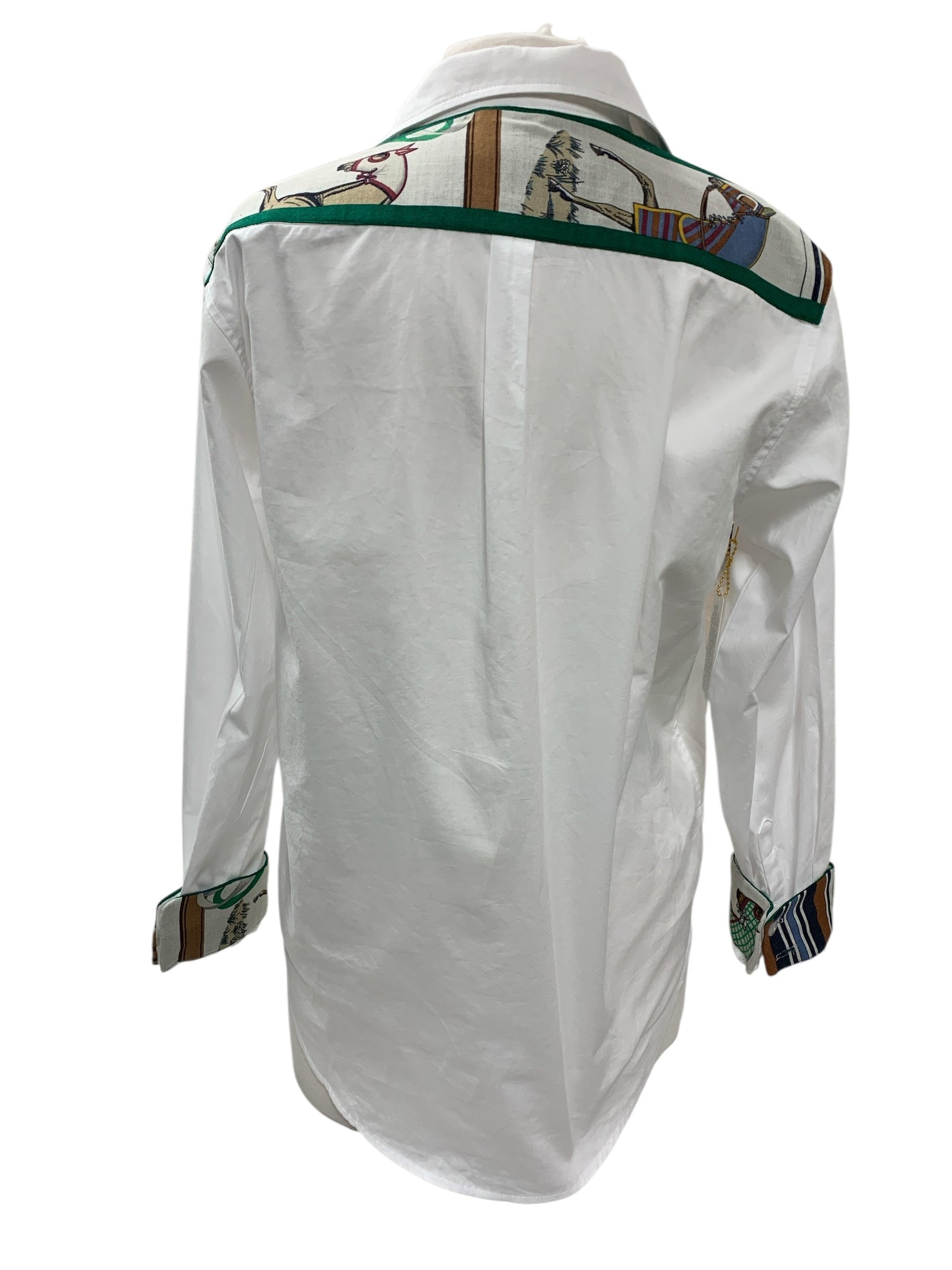 Elevate your style to a new standard with this one-of-a-kind blouse adorned with an authentic designer silk scarf. Each piece is crafted with unique trimmings from top designers, making it a cool and exclusive addition to your wardrobe.