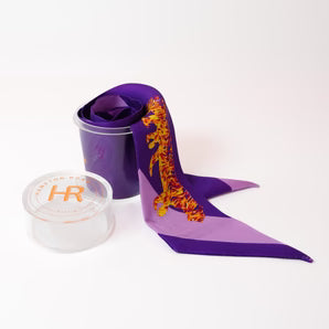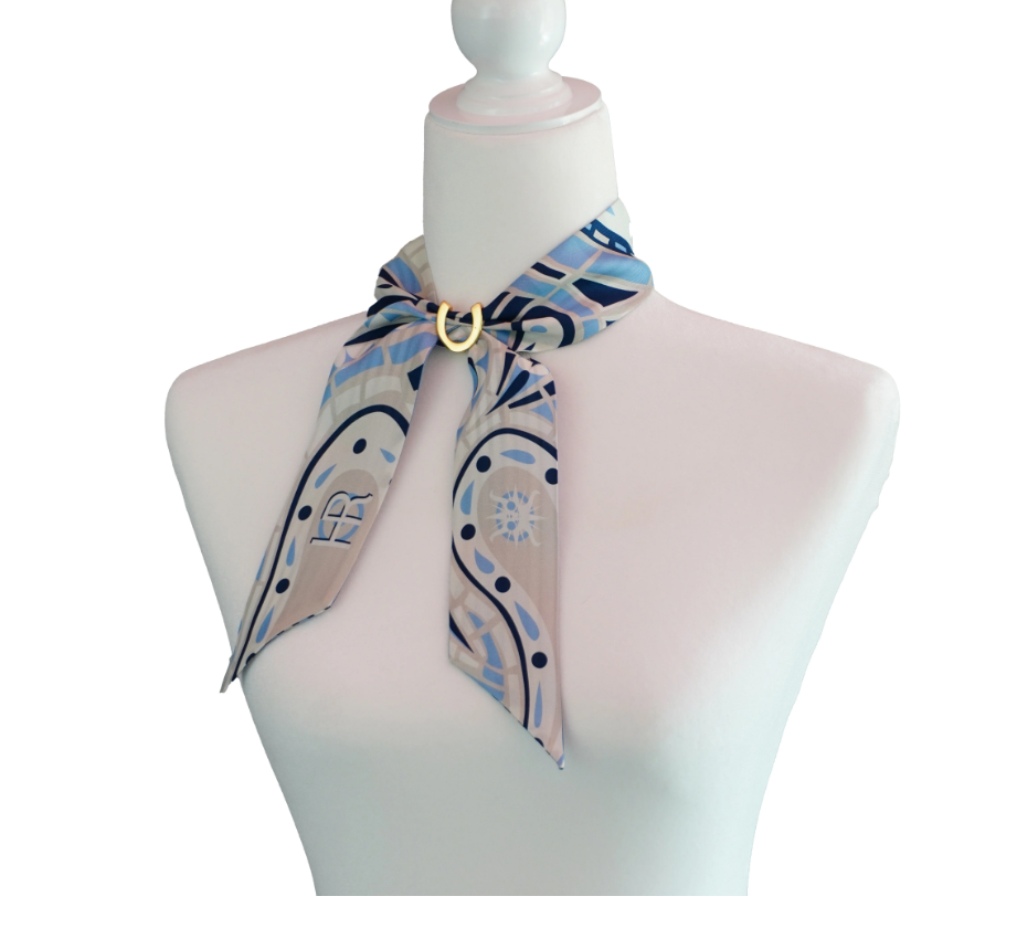 An elegant blend of tradition and modernity, the Hampton Road Silk Twillionaire Scarf Set includes a pure silk scarf and a gold-tone horseshoe-shaped scarf ring, thoughtfully packaged in a sleek acrylic tube for gifting or display. Inspired by classic equestrian motifs and timeless Americana, the scarf features a signature Hampton Road print on luxurious silk twill. Its slim, elongated silhouette is perfect for styling around the neck, wrist, hair, or handbag.