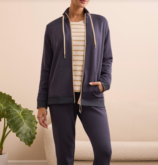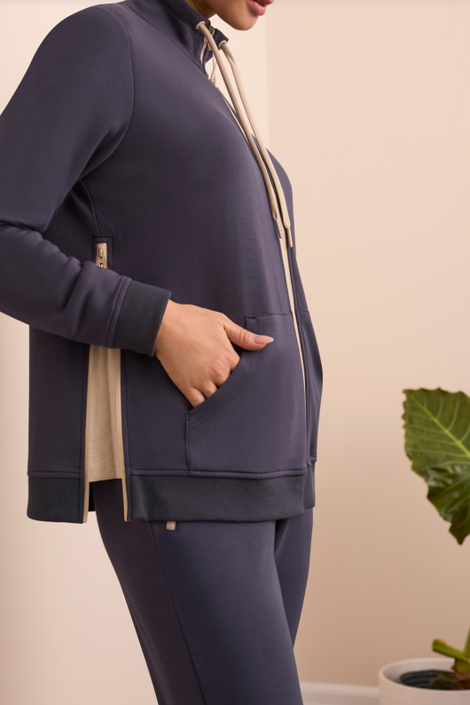 Scuba Knit Mock Neck Zip Front Cardigan | Sapphire